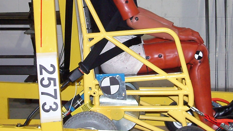 This places a force of over 20g on the surrogate wheelchair and ATD – meaning the WTORS must be able to withstand a load equivalent to 20 times their combined weight.